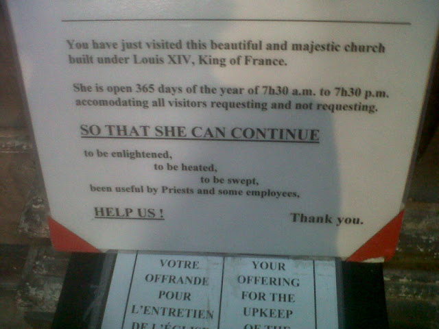 Now, I am not a chicken and can take most things. I catch all sorts of mice and creepy crawlies and have seen and picked up lots of stuff that would gross out most folks. This thing was wretched, but I didn't want to just get up and leave her. I don't know why, put I thought it would be rude... Side note why do I care about being rude? This thing is the devil - get out!!!! but I stayed. We continued to talk about finding apartments, and how the protestant church didn't help her find one, (?quoi?) but the Catholics control everything anyway; then we moved onto Asia, and how living there is like living in a ball on top a pile of balls and how there is no space and Les Invalides has the most space, then to Starbucks and coffee, and how it is like being in the US, as they are friendly and make good salads. But Americans are not genuine, but kind, while french are cruel and difficult.
